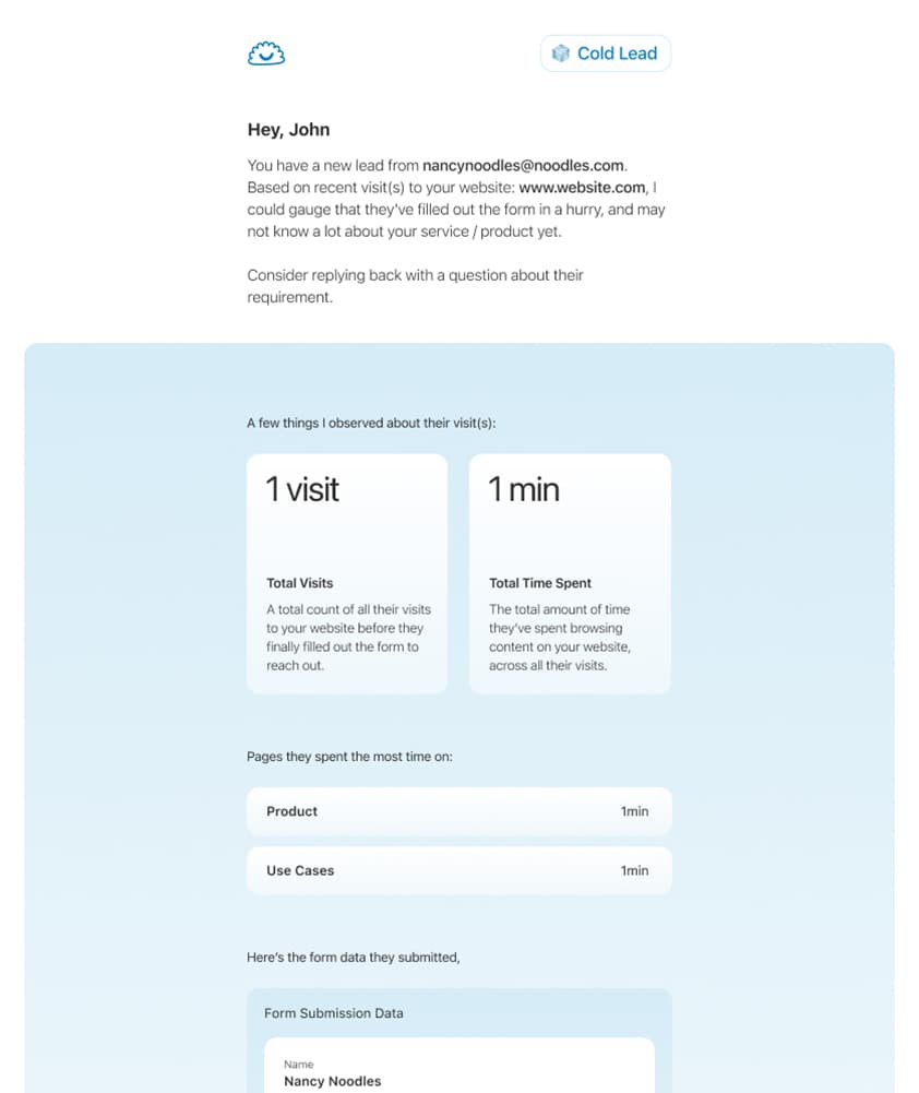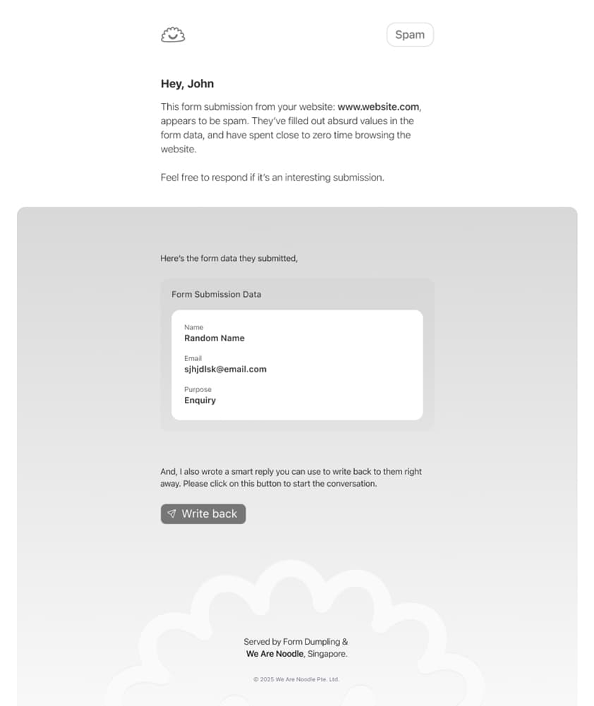 Plug FormDumpling on your website and your contact form submissions are tagged and ranked by importance. It works like magic.